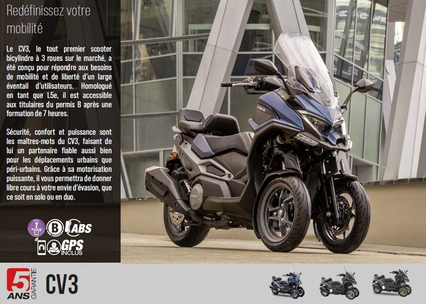Rien ne lui résiste ! Premier scooter de sa catégorie à être équipé d’un moteur bicylindre, le CV3 va changer la face du marché des 3 roues et votre quotidien.